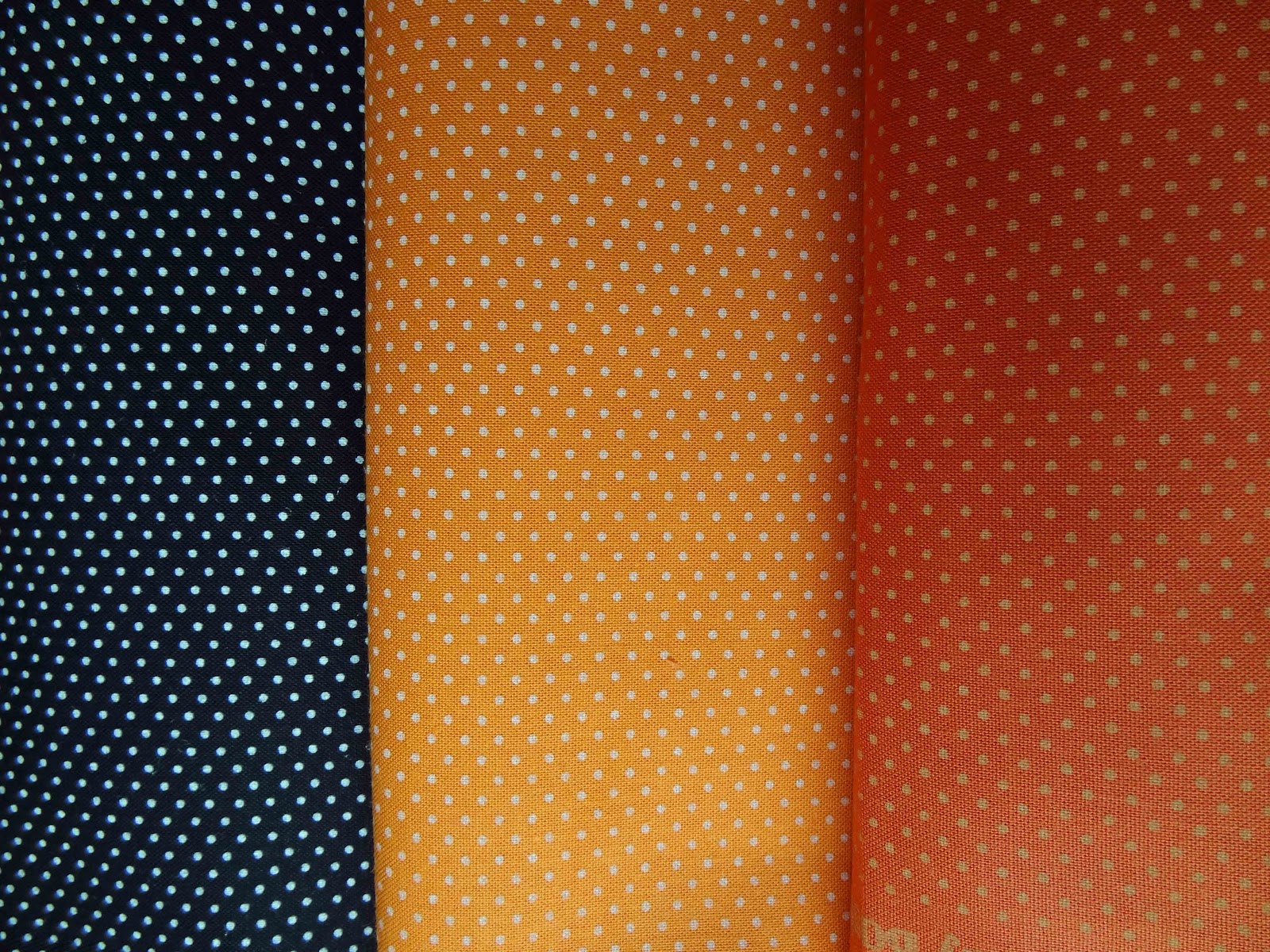 You'd think I'm channeling Halloween to be ordering these black and orange dots from Connecting Threads. Actually, no. These fabrics are intended for an OSU (Oklahoma State University) quilt I've got in the planning stages. So hopefully at least some of these three will leave the stash before the end of the year.